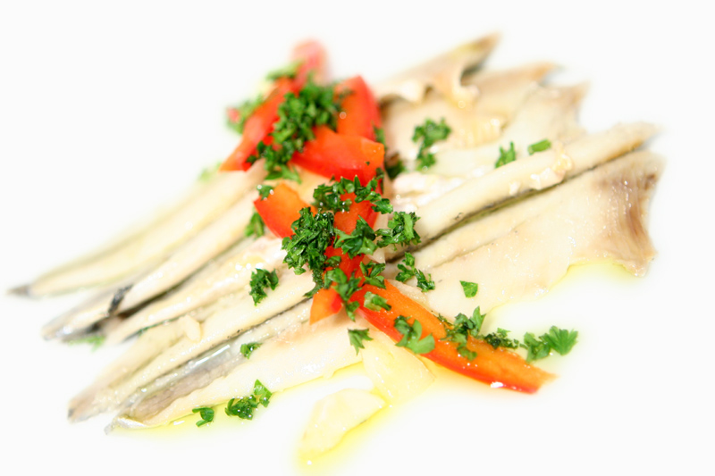 100 gr. in Knoblauch-Olivenöl-Kräuter eingelegte Sardellenfilet
